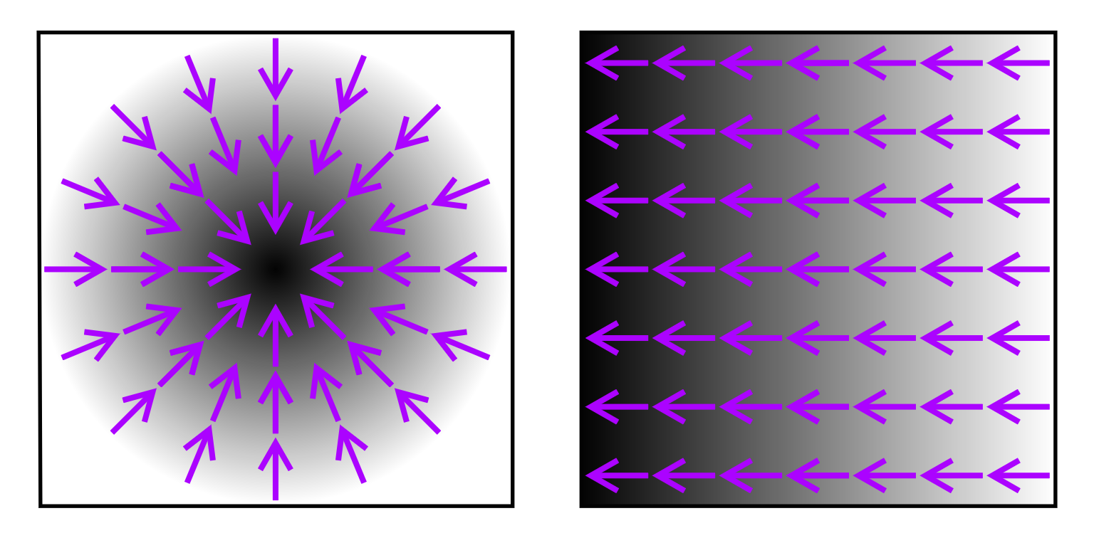 Det er altså disse gradienter som påvirker mønstret i størrelse og retning, og som dermed kontrollerer hvordan mønstret skal vokse. Det er en slik gradient som ligger til grunn for video-signalet i forrige del.