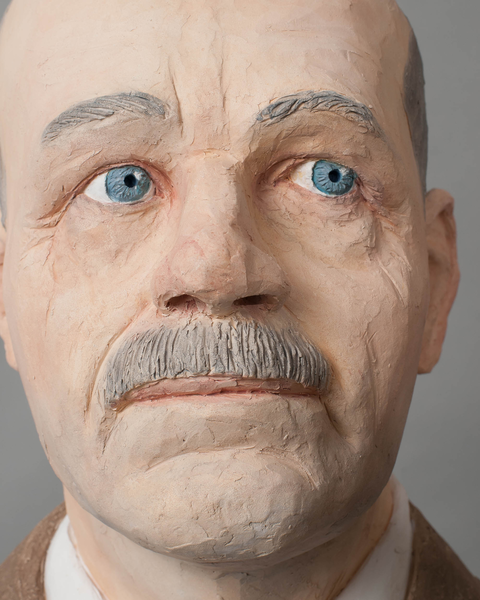 I have worked for many years with these appropriated portrait pictures, using them for measuring the facial features of the portrayed and transferring these measurements to my sculptures, creating likening portraits through a working method that I learned to control in every detail. This method has functioned for me both conceptually and organisationally, since I feel the need for a structured working environment to sustain my mental stability.
