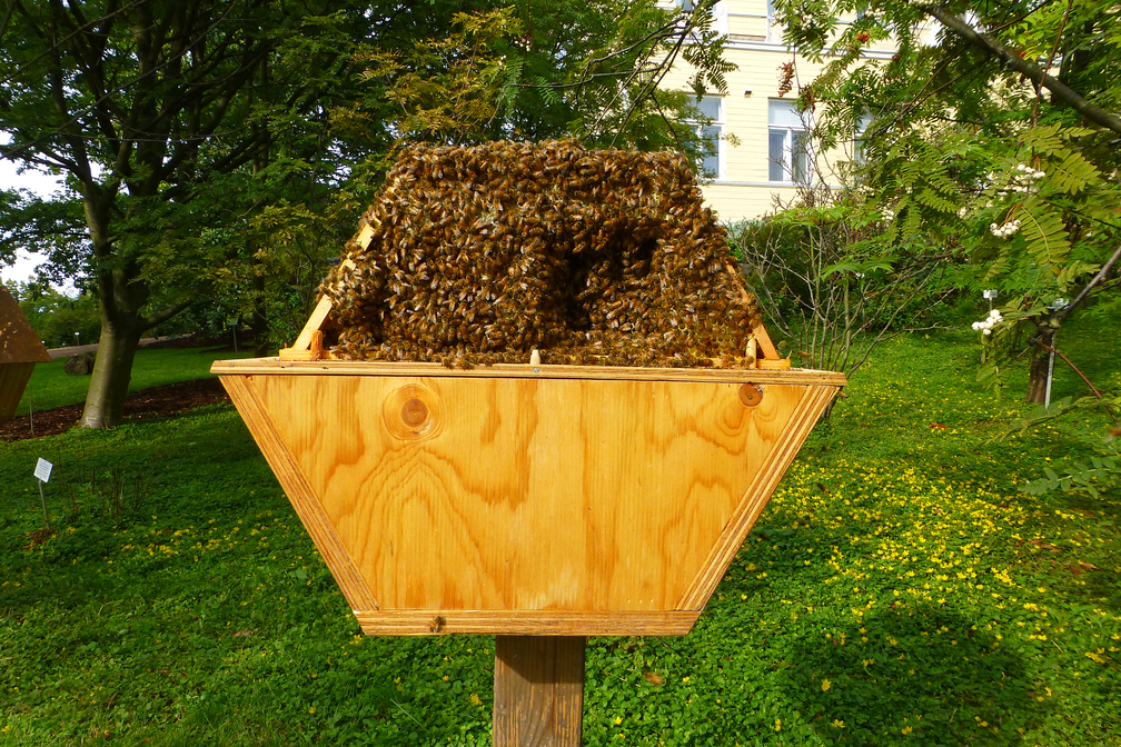 The Hexa-Hive is an experimental hive, designed to both host honeybees and serve as outdoor furniture for humans. From 2012 until 2018, the Hexa-Hive has been a semi-permanent installation in Kaisaniemi Botanic Garden of Helsinki and other locations in Finland.