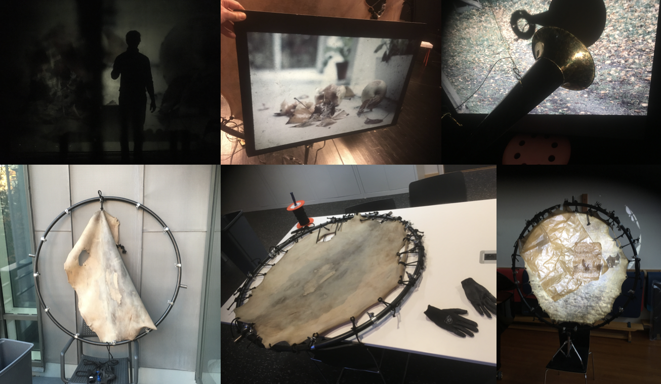 Hvor mange tanker kan ikke fyke gjennom bevisstheten på kort tid? Jeg rakk også å tenke på det sjamanistiske tilsnittet ved prosjektet og det som utspilte seg. Sjamanistisk, som i at posisjoner tilslører seg. Identiteter blir uklare. Hvor faste punkter ikke kan fastsettes. Hvor klarheten mellom levende og døde forsvinner. Mellom legitime og illegitime standpunkter nivelleres. Følger det med noe slikt på lasset? Skaper jeg det i musikken – ved den langsomme pulsen mot selskinnet? En form for rituell handling?