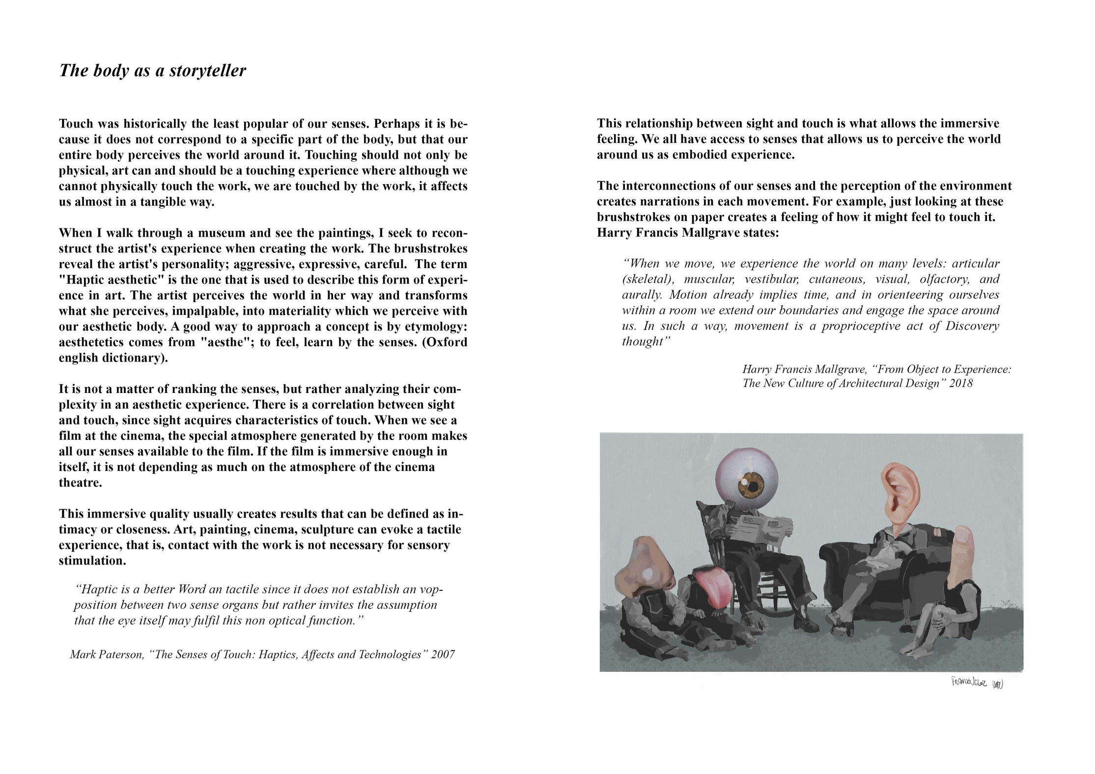 “And I found that of all senses the eye was the most superficial, the ear the most haughty, smell the most voluptuous, taste the most superstitious and inconstant, touch the most profound and philosophical.”