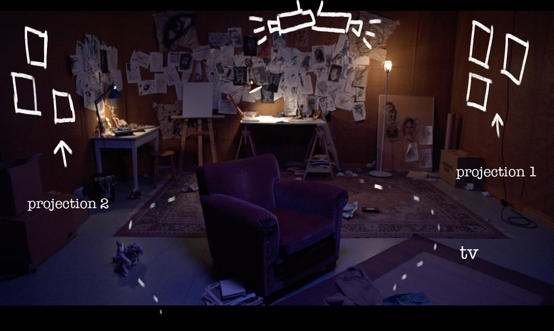 I am interested in the idea of combining techniques and ways of recording stories. As an illustrator I have a great appreciation for paper and art supplies. Sketchbooks, papers, and objects that Johan collects could also be characters in the story. As a technique, it seemed appropriate to work on this project with stopmotion and mapping projections. These share the idea of giving life to those initially inanimate objects, giving me the possibility of finding in that place of limited resources such as Johan's room, an infinity of characters which could tell stories.