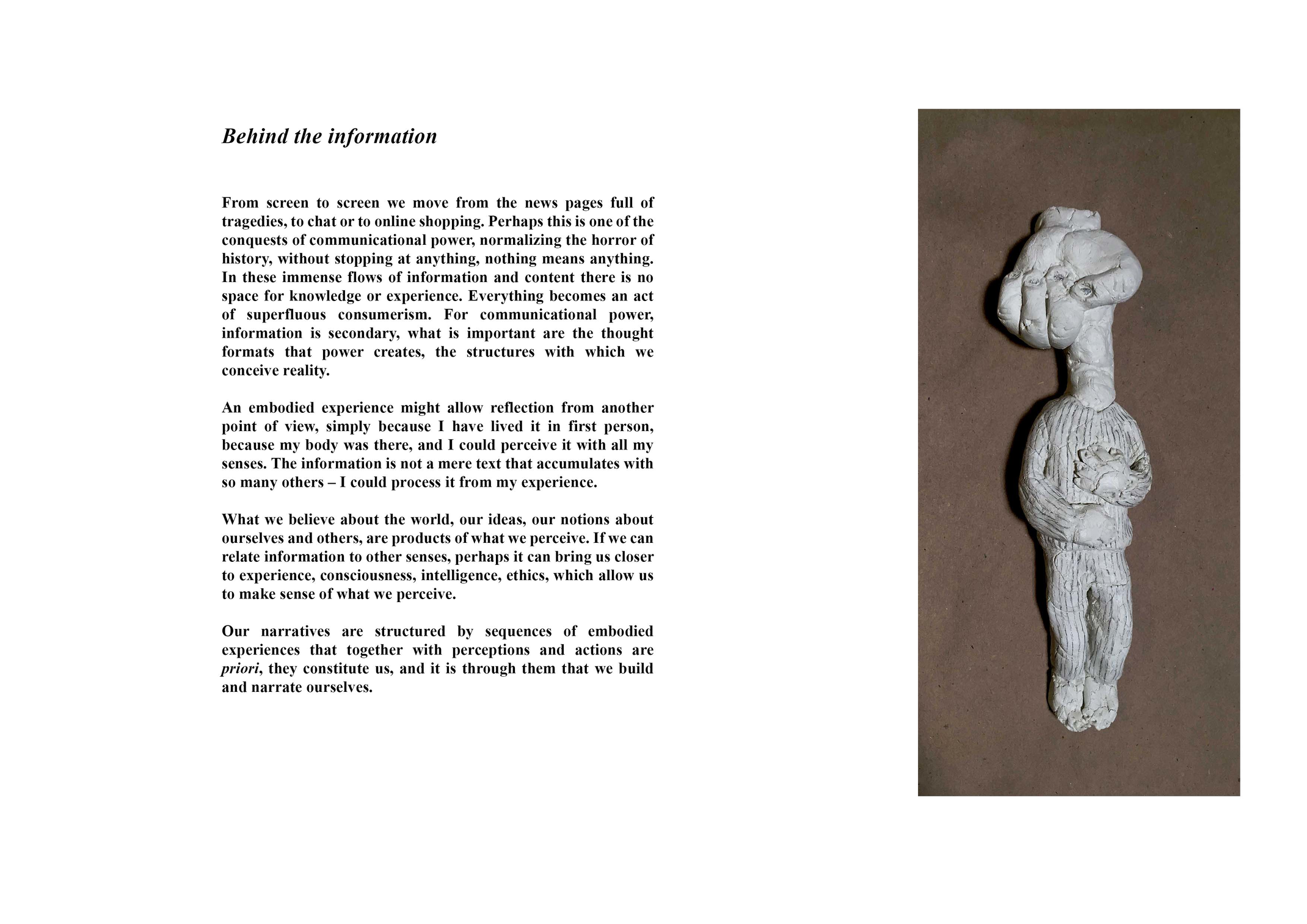 Separated and analysed, my project is to tell stories by combining them again, aware of their potential and the possibilities of perception to tell and receive stories with the whole body. The objective is to explore a way of telling stories that involves action, the interaction of the body, embodied stories. I am intrigued by the idea of whether telling stories in this way could create a connection with the audience or the participant, create a deeper understanding, perhaps closer to empathy, for someone else’s reality? After visiting Johan’s room, does he feel alien to you, or do you feel something else? If so, how can these storytelling tools be applied to generate a deeper reflection, a more emotional connection, say, for example in our educational institutions?