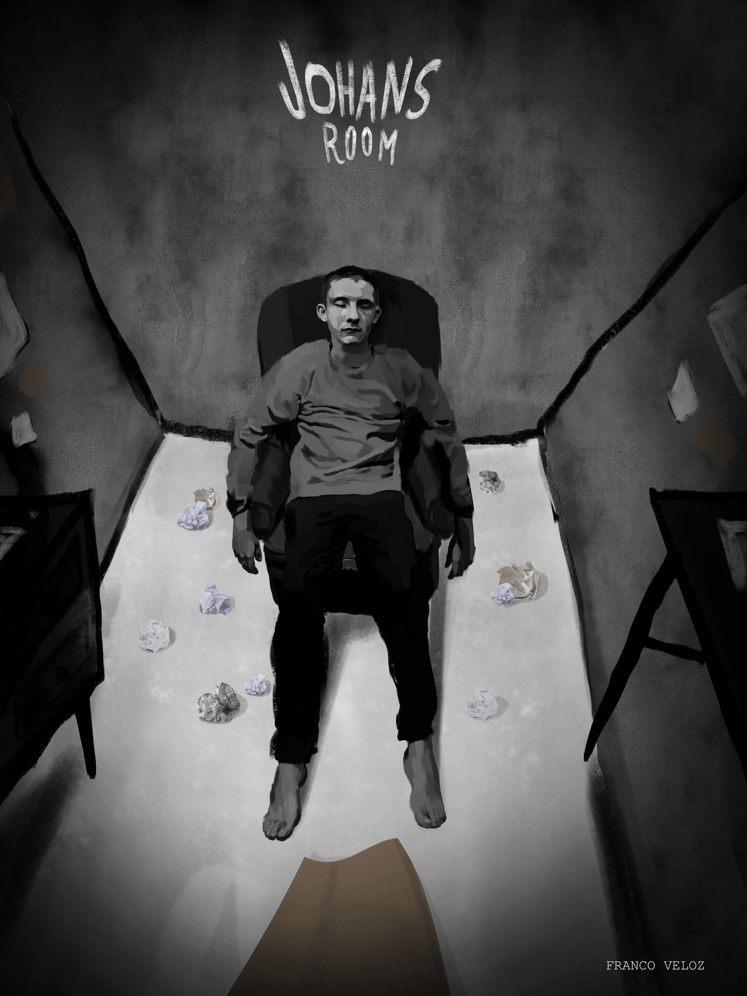 I decided that Johan, the fictional character of my project, should be an artist. With pencil and paper he would tell his story in the privacy of his room. There he portrays the world from his point of view.