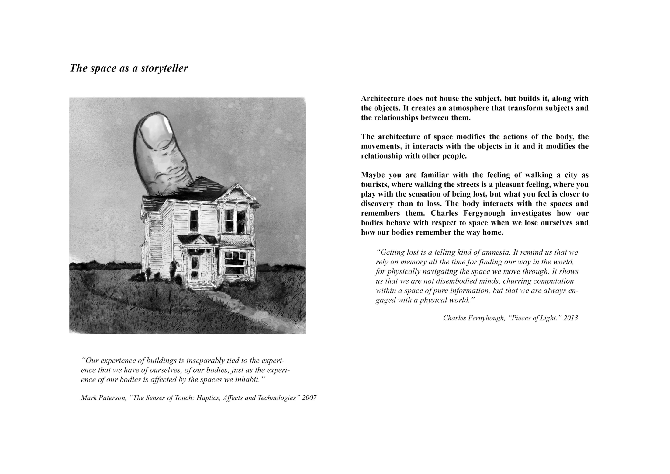 The character is not at the scene. Before entering the room, the visitor will be notified of the character's absence. It is the visitor who must reconstruct Johan's image through interaction with the space. If there is no interaction, the place and the storytelling of the animations will be disconnected. The intention is to put the body into action – encourage the visitors to put their body into action. Only in this way is a change in space possible, through the body in movement and the interaction with the environment.