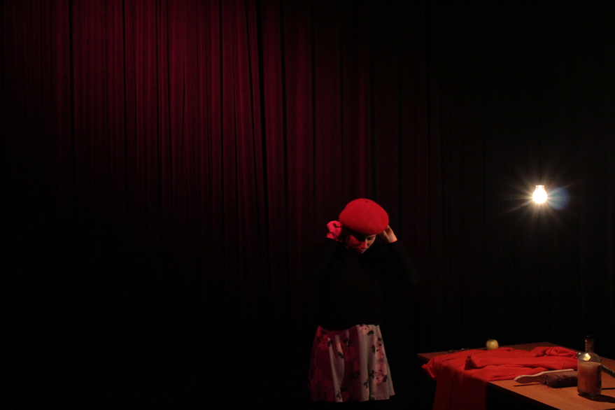 After posing with the theatrical props offered to them, the participants leave the photography room and enter the screening room where they are given the time to look at the photos as spectators and listen to revealing stories of the objects they were posing with.