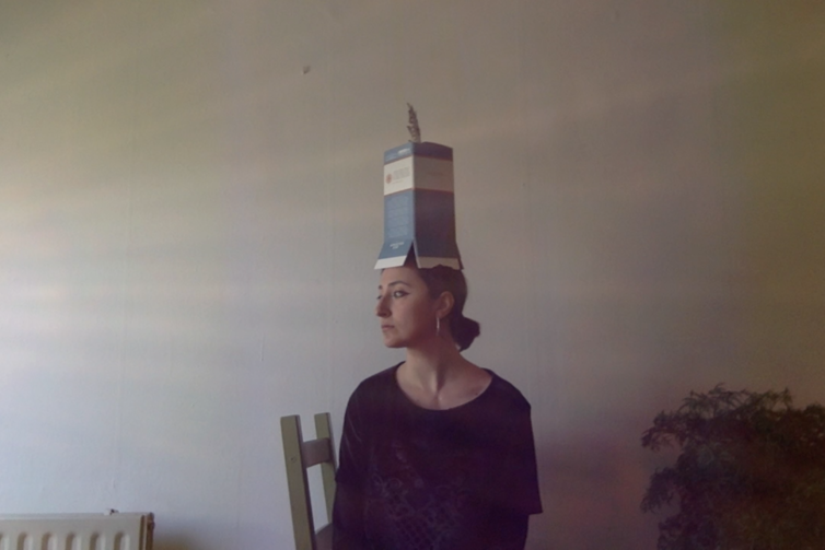 In the once factory space made into a shared art studio, I recollect my notes by reading them to myself, page by page. I tear off each page I read and place it on my working table. I am being recorded frontally while a stack of noted paper forms by my side. The reading and recording stop when the notebook is void of paper.