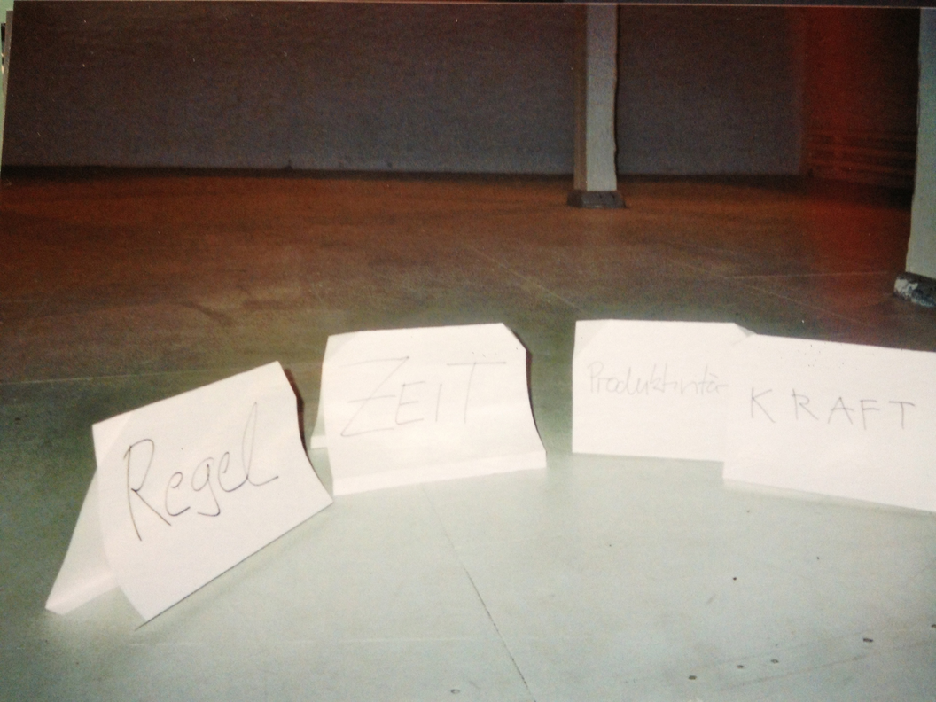 IT’S DOING IT is part of an ongoing preoccupation with phenomena described under notions of passivity that started in 2009. Formats developed so far include video work, text, and an evening of dance and music as objects, carried out by a musician, five dancers, and twenty-seven objects ('passive movement', 2012). The research format IT’S DOING IT (2012/13) came into being three years after I started to work with the idea of ‘passivity as force’. Each articulation explores a different angle of something that could be called a ‘productivity of passive forces’. Holding the different endeavours together is an interest in surpassing the dichotomy of activity and passivity, to create a specific attention. This attention can be described as one of a shifted relation towards experiencing temporality as well as a spatial positioning. It is about an attention between active and passive, neither doing nor being – an aesthetic experience comparable to experiences in nature. All the formats developed were created to enable settings in which this particular attention, which I like to link to passivity, is likely to occur. The nucleus of interest lies in finding ways to question anthropocentrism by experiencing what a particular place and the things in it may do to us – be they humans, non-humans, living or non-living entities, ideas, concepts, or materials. This practice gives justice to both objects and processes, to both things and experiences. It is listening in various ways. Following choreographic approaches, one crucial question will always be how (a) movement is created. Movement is related to a specific constellation. A constellational approach draws from the notion of agency as it appears in actor–network theory (Bruno Latour) and has been developed by many thinkers within contemporary philosophy, with very different positions such as Jane Bennett’s ‘vitalist materialism’, Graham Harman’s ‘object oriented ontology’, or Karen Barad’s ‘agential realism’, to name only a few of the outlines of the fields mentioned. Rather than linking references in any direct way, this work is trying to set the concept of ‘actants’ at work in order to equalise relations between art and philosophy during processes of knowledge production. Materials assembled in this particular proposition are organised in such a way as to find another way of doing as well as to invite a ‘passive gaze’. It’s rather drifty and inefficient, an intentionally non-intentional attention. There will be no obvious outcome or surplus, but hopefully another kind of insight happens unexpectedly. IT’S DOING IT was developed during a research residency at Gessnerallee Zürich in the frame of IPF (Institute of Performing Arts and Film, Zurich University of the Arts) in 2012/13. During eight weeks, the philosopher Jens Badura, head of the research focus 'performative practice' at IPF/ZHdK, became my consultant and partner in weekly conversations. In the same frame, I was asked to give a workshop and a presentation. Other than that, I followed a solitary mode of life, aiming at an exorcism of governmentality by overdoing time management yet filling it with aimless activities, imagining post-work futures, and drawing on a concept of intuition within a concept of boundaries and rigour. IT'S DOING IT also draws from writings around laziness and doing less (Bojana Kunst) and notions of precariousness and exhaustion in post-Fordist economies. My daily routine was committed to a rigidly protocolled time to ritualise my practice and therefore enable passivation. The strict time protocol is subjected to repeating time units with certain titles, proposing specific tasks or fields of activity (dancing and other physical practices, reading, writing, eating, sleeping, cultivating conviviality) – every day for the same amount of time, the same thing. Ritual becomes the catalyst for another organisation of labour. Based on duration and repetition, materials are generated by constellations rather than subjective authorship. This research exposition is meant neither as representation nor as documentation, but rather as something that could become a setting of distracted attention, between active and passive, paying attention and being paid attention to, in an indifferent yet slightly pleasant way – the ‘passive gaze’. During the eight weeks of protocolled time, each unit had been given a title. Now, rather than associating the materials generated with the time units they were developed in, the set up of the exposition relies on fields of associations generated by certain notions crucial to the endeavour. As such, none of it is particularly interesting, and it is only via repetition and duration that one comes to appreciate the flatness of it. Materials such as texts, videos, pictures, and audio files repeatedly appear in different constellations and at different crossings of the site.