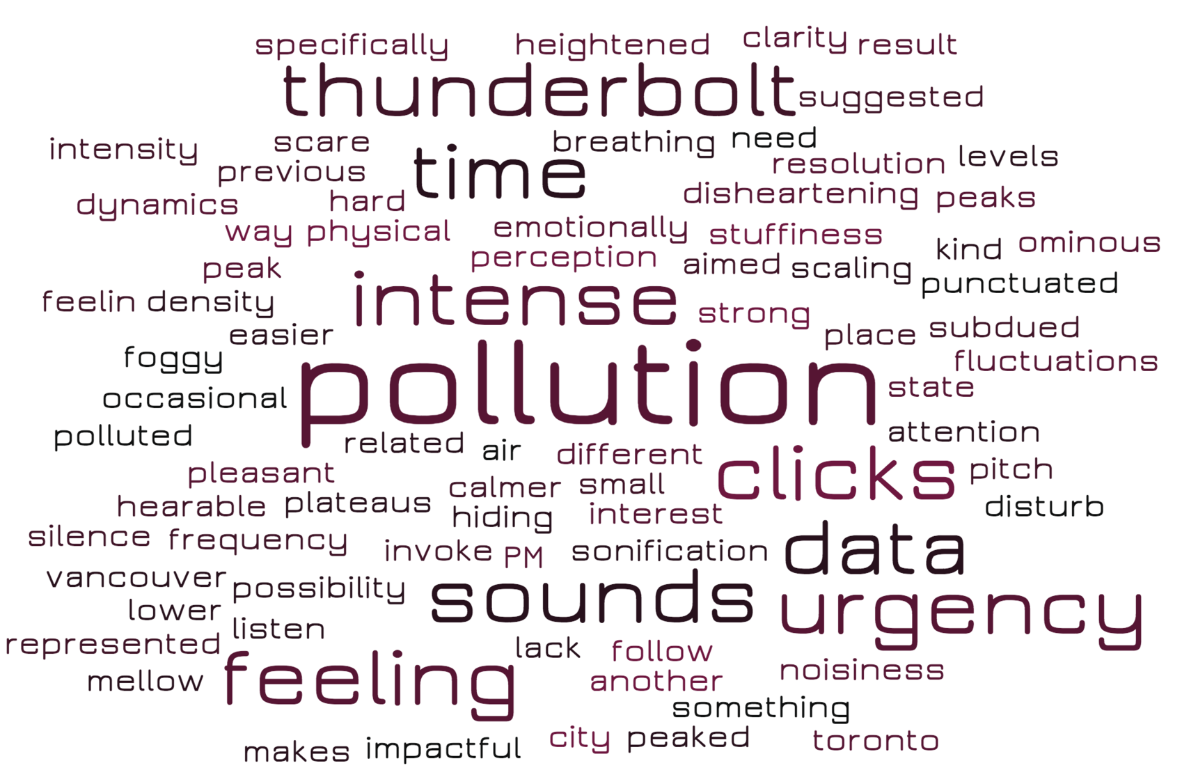 Figure 3: Word cloud of participant comments describing the Vancouver and Toronto air pollution sonifications.