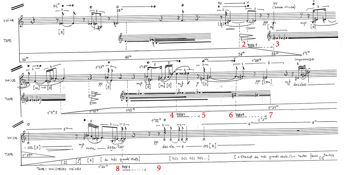Ohnfad (2000) for female voice and fix media was composed in Paris at Ccmix (Centre de Création Musicale Iannis Xenakis). Part III of Spazi, cycle of five vocal pieces (1-5 voices) and electronics (2000-2005), it is based on Saint-John Perse’s poem Vents (Winds).