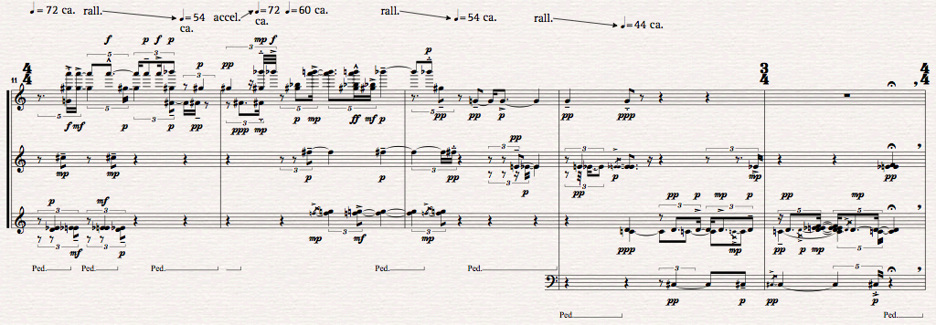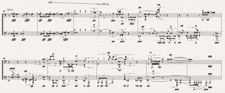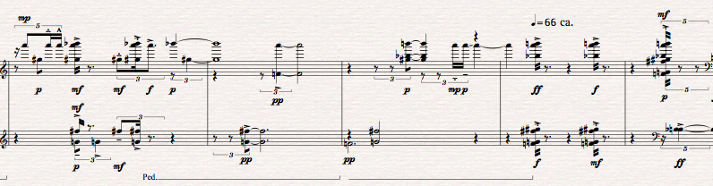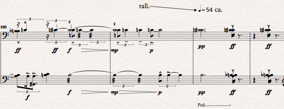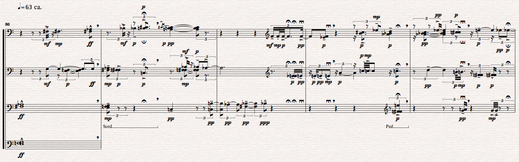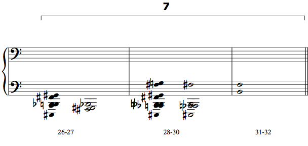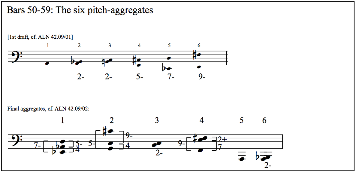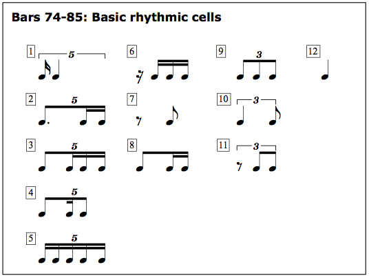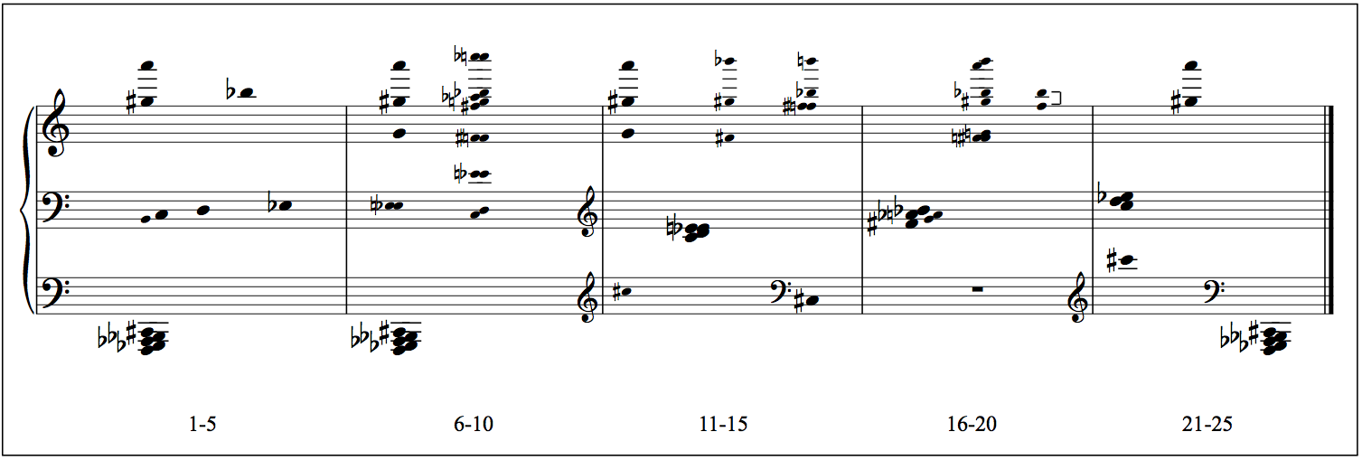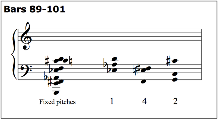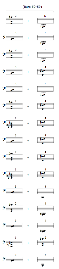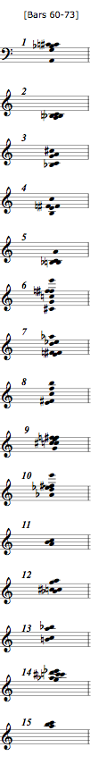 Bars 60–73: the fifteen chords and their construction out of the previous six chords.