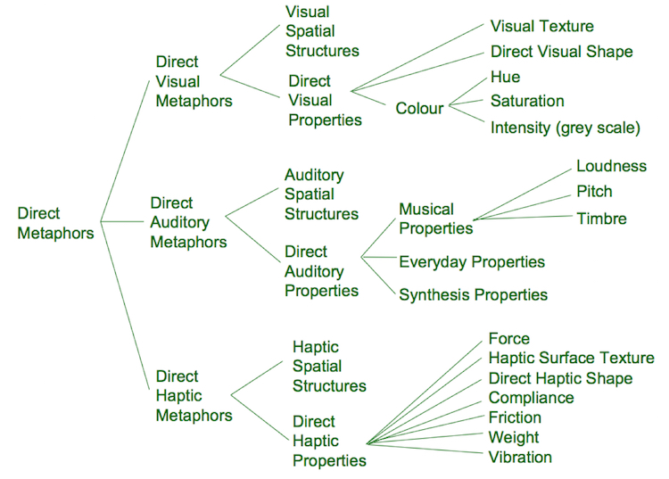Figure 2: Direct Metaphors categorize the sensory-specific properties to be considered for multimodal display.