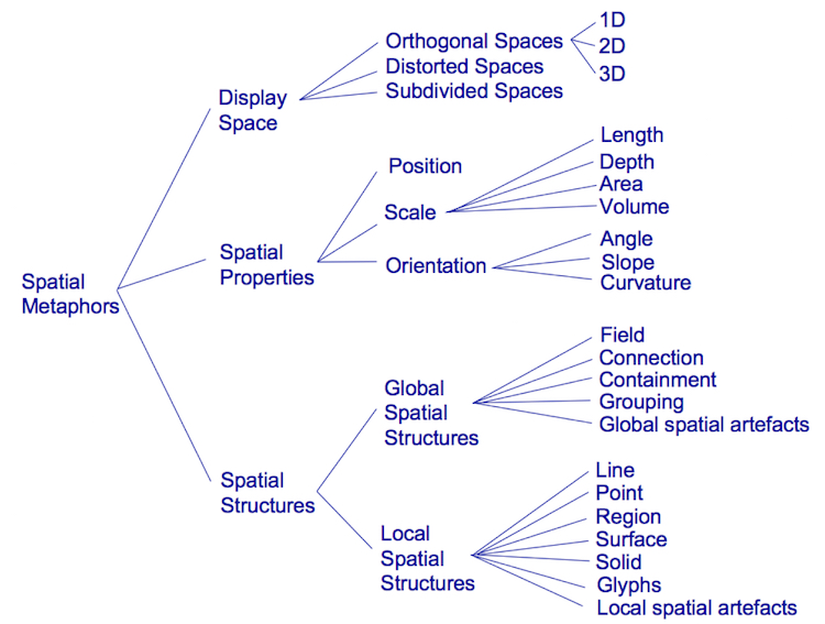 Figure 1: Spatial Metaphors categorize the space-based properties to be considered for multimodal display. These are applicable for all sensory modalities.