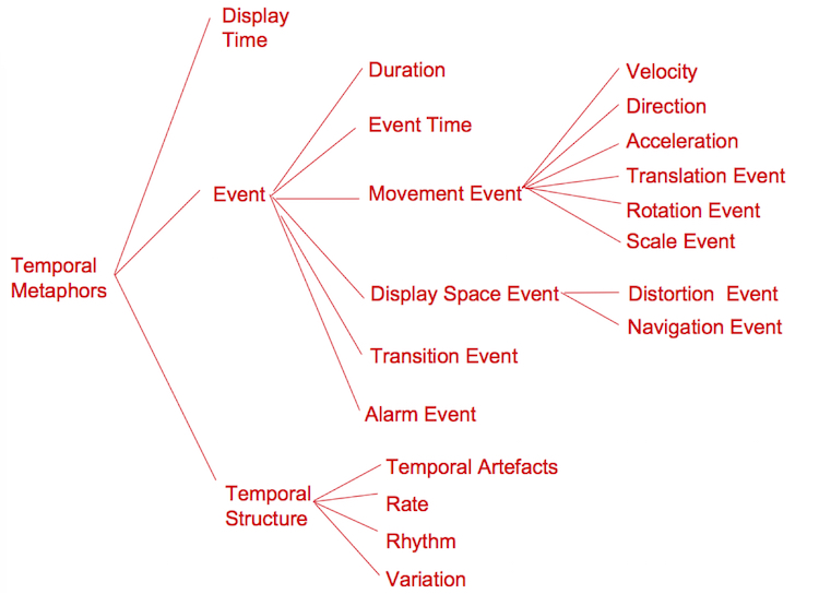 Figure 3: Temporal Metaphors categorize the time-based properties to be considered for multimodal display. These are applicable for all sensory modalities.
