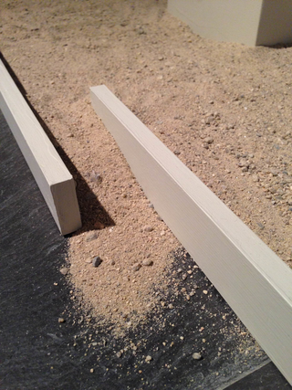 came from deep within the labyrinth of the process, such as positioning paintings face up, face down, or staggered or installed in unexpected ways