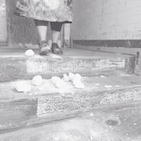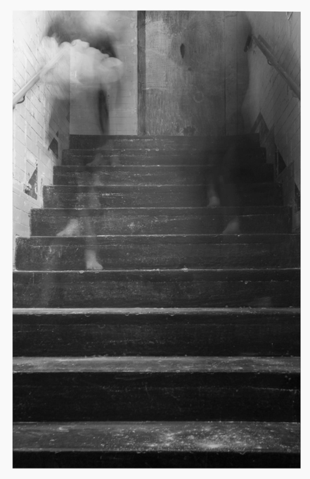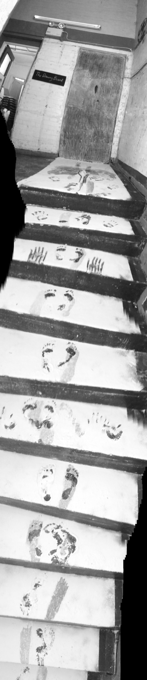 Re:Calling is a collaborative work of the artists Traci Kelly and Rhiannon Jones, UK. Resisting the expectations off language, it forms part of a subversive investigation into writing as a visceral encounter and as an excavation of self and site – a mode of human extension into the world. The work is developed and made for the site, an old school staircase with chalkboard. It approaches writing and location as a site of subject invention, a place from where human relations develop cradled by institutionalised architectural and cultural values.