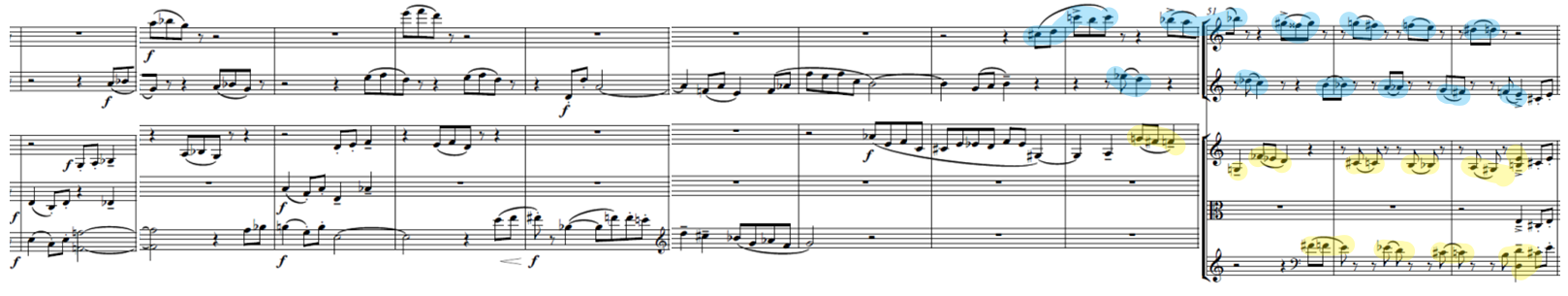 How Prokofiev used the five instruments is truly a masterclass in instrumental writing. When working on his quintet I could not help but notice and admire many of the textures and effects he created through his instrumentation. Of course Schulhoff is a different work, and arranging has its constraints, however there are definitely a few aspects of my arrangement which I can be attributed to Prokofiev.