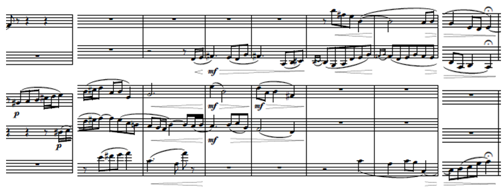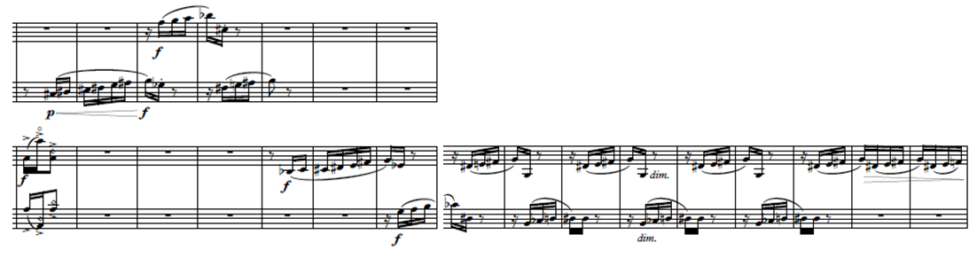 Unlike the first movement, the second asks for jagged, interruptive interactions along with longer alternating phrases. By using the differences in timbre between the instruments, these changes can be articulated very clearly, adding an extra element to the excitement.