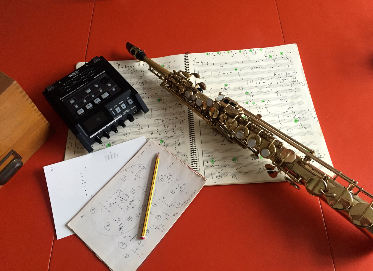 Over an extended period, I have ‘hunted’ and collected a vast amount of multiphonics for soprano and tenor saxophone. With over three hundred multiphonics for tenor saxophone and a little less for soprano, it’s a lot of different fingering combinations and delicate embouchure adjustment that needs to be learned before the material turns into embodied knowledge. Hence using these complex sounds means maneuvering on a knife-edge between aestheticism, auditory awareness and physical boundaries – challenging and rewarding with the potential of producing ever-new layers of complex and intriguing textures.