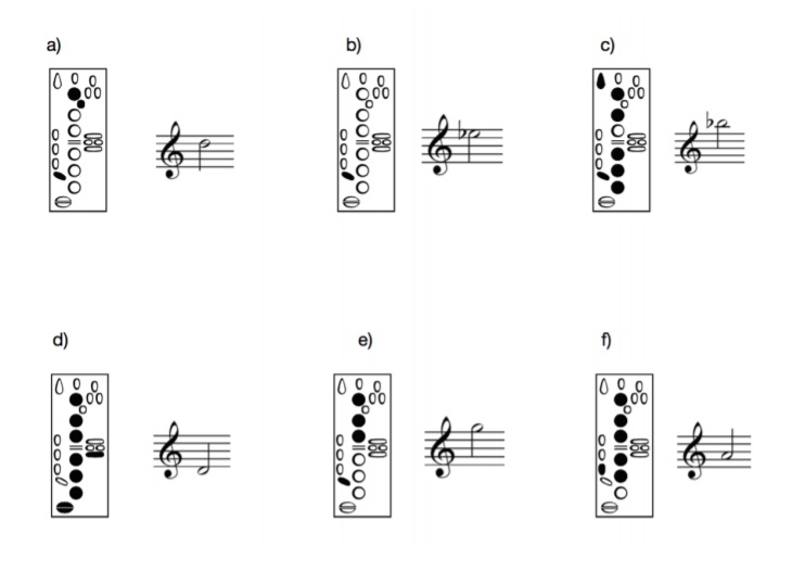 b) Mechanical consideration. Groups of multiphonics that can easily and at faster tempi be combined, with neighboring fingerings (close to each other).