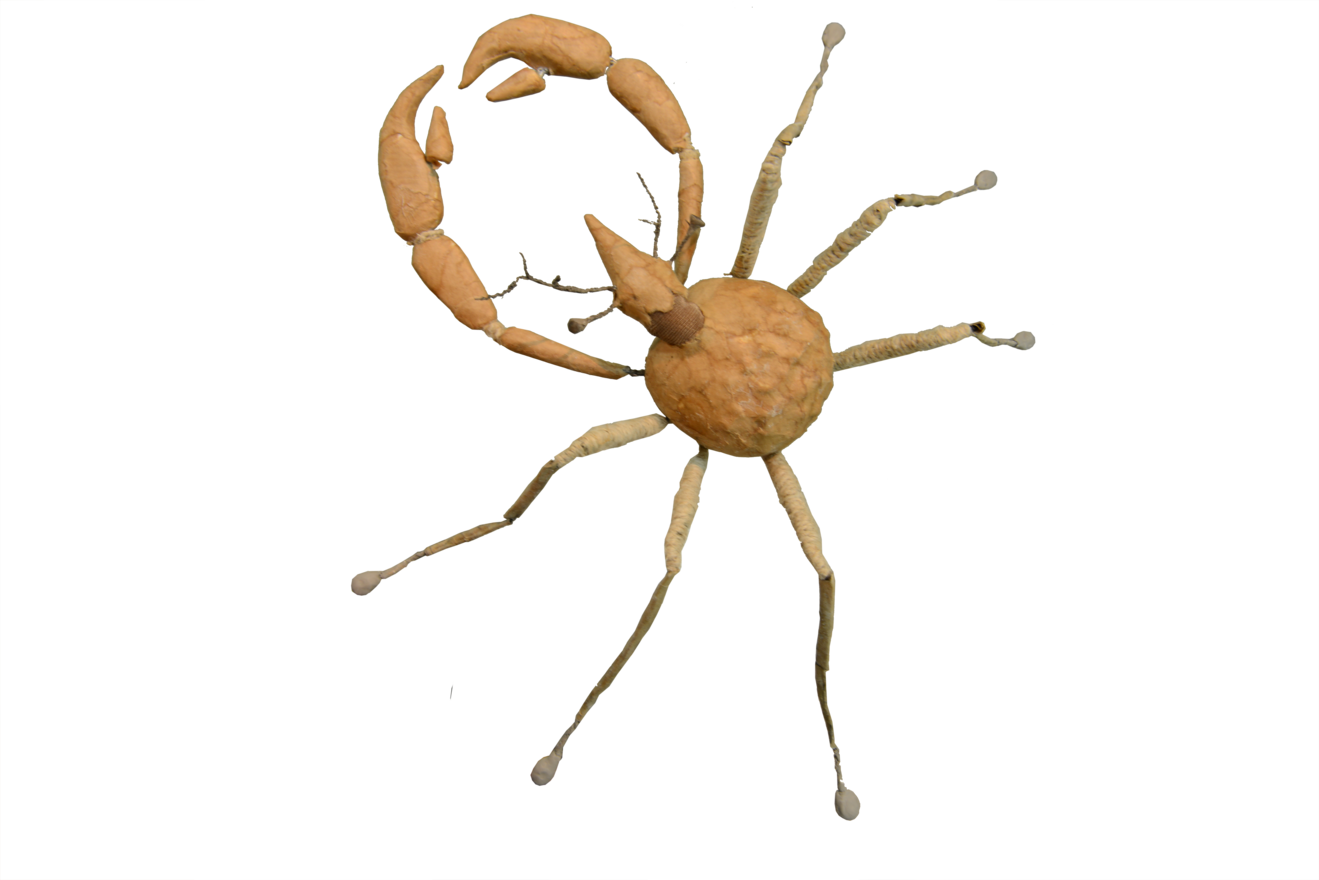 Orginalubåt i sin förvaringsbox. Material papier-maché,