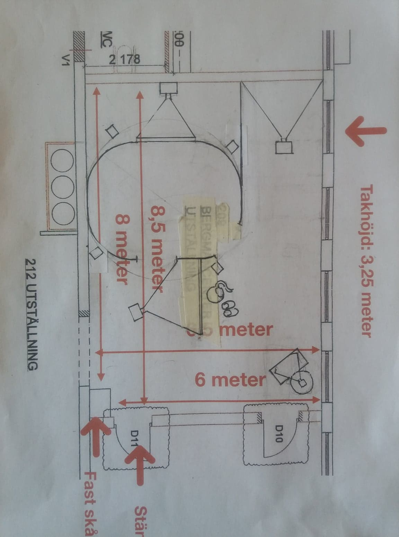 Får en planskiss över Bergmnancenters utställningslokal.