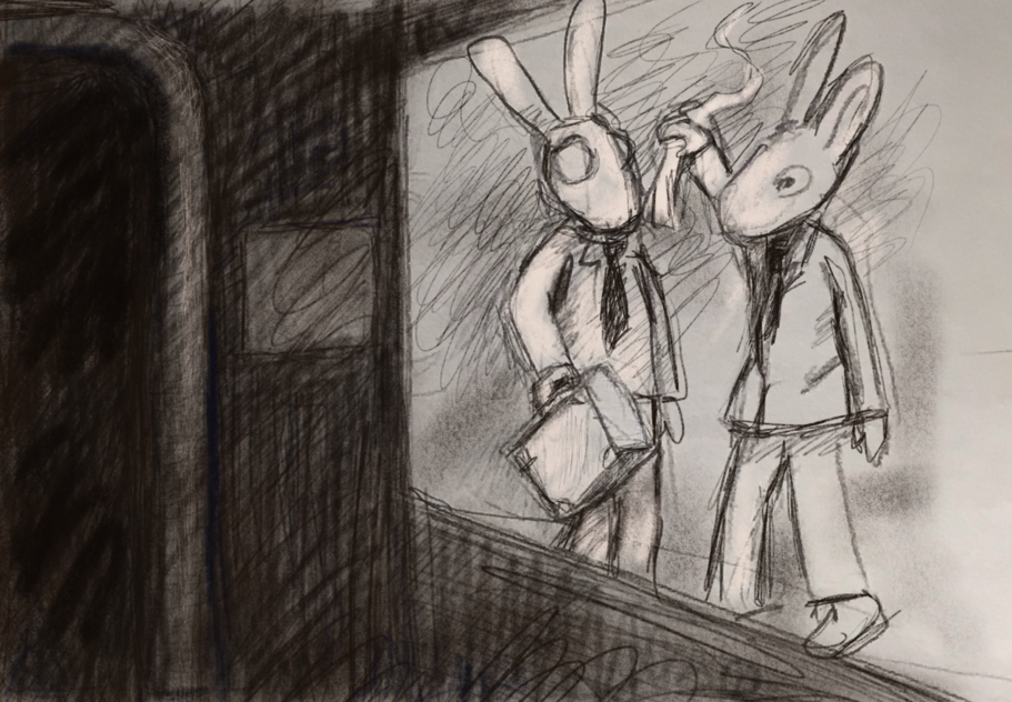 in kommer 2Rabbits på sin resa genom Purgatorio. De upplever en värld av plast och olja, de tar värvning på en oljetanker som sjunker i hårt vatten. Material till filmen är en blandning av gryniga journalfilmer jag hittat på nätet, kanske inte alltid helt tillåtet. Men mitt försvar är att de faktiskt ligger där ute i molnet som ett bevis på en tid som existerat alltför lockande att inte använda, de blir min scenografi där alla bilder manipuleras görs om, sätts i ett nytt sammanhang där inga intressen eller möjlighet till profit finns. De blir scenerier för 2Rabbits i ett montage av Gustave Dorés illustrationer från Den gudomliga komedin tillsammans med miljöbilder från Gotländska avkrokar.