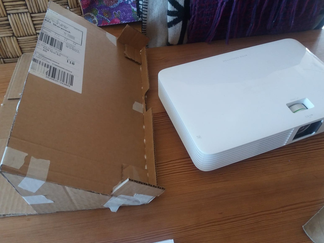 Gör en provisorisk ställning för projektor med hjälp av banankartonger och vinklad låda som håller projektor på plats och i rätt position.
