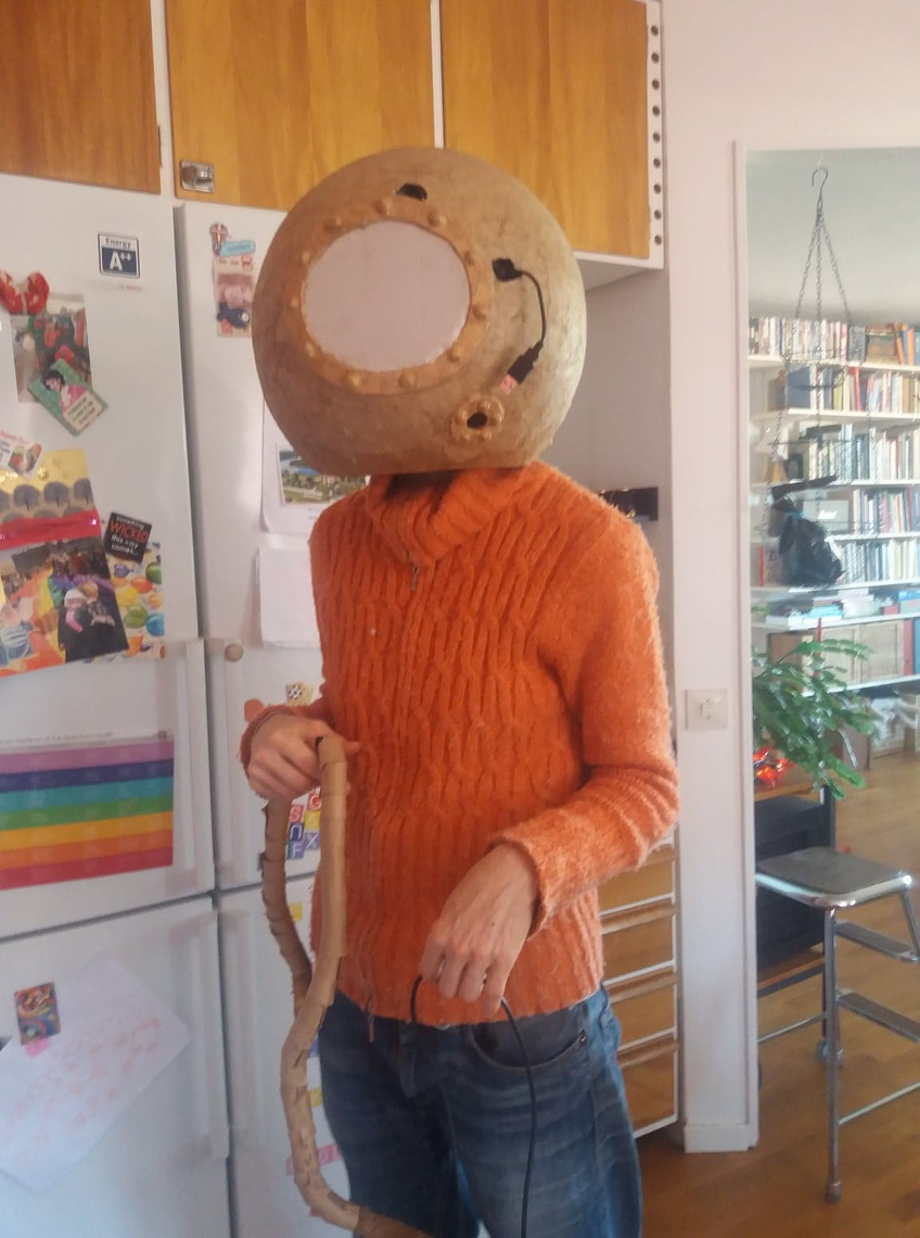 Inser att jag har motstånd till att söka runt på nätet efter svar, texter flyter runt på skärmen utan att jag kan ta dem till mig. Jag vill driva iväg, viktlös som i en av mina bästa drömmar. Eller när man i en stund av tristess lyckas förflytta sig ur sina tankar. Som den gången på en grå asfalterad innergård vid Odenplan. Jag måste ha väntat på någon. Sitter på den spruckna betongtrappan som leder ner mot källarlokalen och ser gårdens tristess mattas ut, blir till färgad film i flera dimensioner där jag kliver in. En flummig dagdröm, svår att beskriva men ändock verklig där och då. Nu många år senare med en dykarhjälm av papp på huvudet är jag tillbaka till känslan jag hade där på gården sent 90-tal.