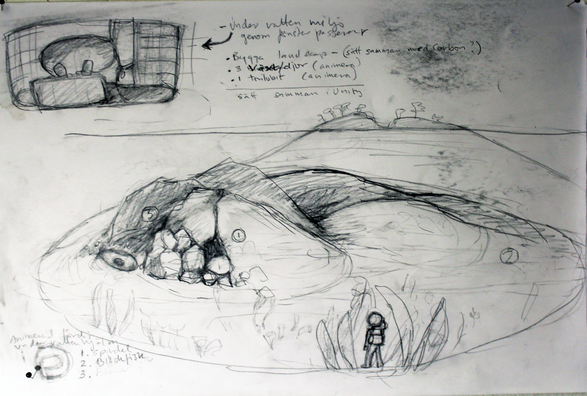 Animation, vilken form den än tar, har en tendens att kräva tid och sluka ens uppmärksamhet totalt. Jag vill bygga upp en undervattensvärld i Unity men med tidigare dyrköpt erfarenhet vet jag vikten av att förstå hur ett animationsprojekt skall läggas upp. Jag tar en tur över till Ester och Martin på KKH där jag förklarar mer ingående om mina idéer och visar dem skisser över landskapet där ubåten skall passera och hur jag också planerar en dykfärd med hjälm och vr-glasögon. Är det överhuvudtaget möjligt för mig att utföra med mina begränsade kunskaper?