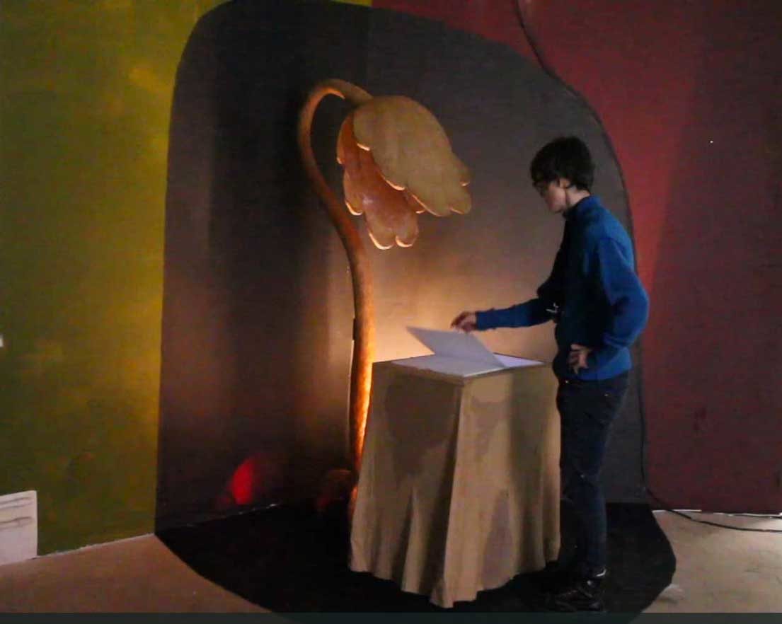 Under mina sista desperata dagar på Gotland hinner jag också söka in på StDh. Hittar masterprogrammet Narrativspace, ”berättande rymd”,och ser möjligheten att utveckla idéen om en installation där animationer skapar atmosfär och rymd.