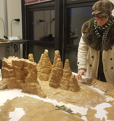 Nu ligger focus på att rumslighet, att från den lilla animationemoellen bygga upp en installation i skala 1:1.