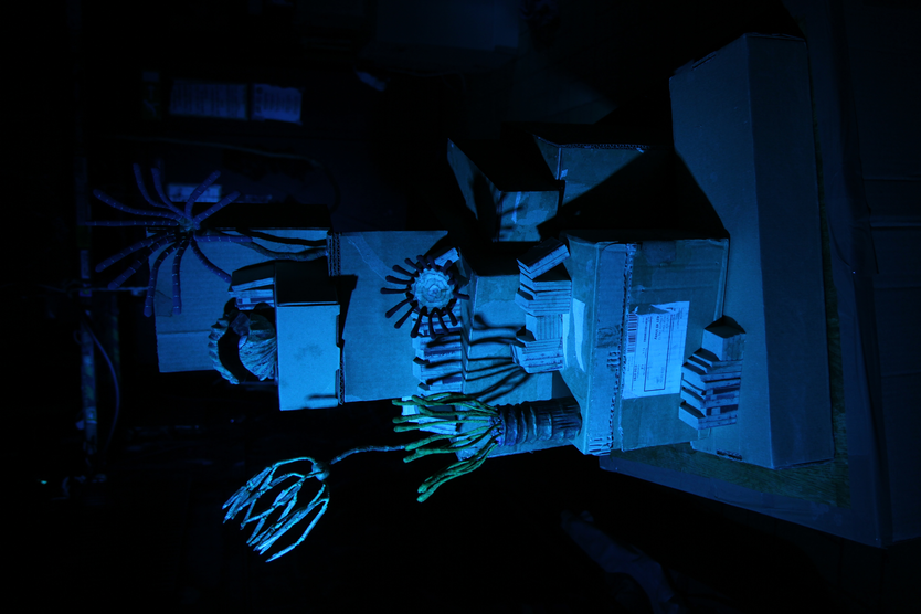 Focus på utställningen är VR och arrangeras av Darling Desperados tillsammans med studenter från Art of Impact. Då jag redan planerat en utställning i Stockholm väljer jag att visa modeller som står till grund för VR upplevelsen tillsammans med Undervattenshjälmen. Lokalen är i vanliga fall en punk scen.