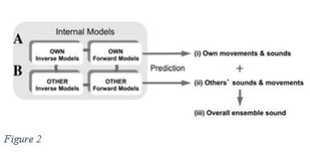 Figure 2 gives a schematic overview of how mental imagery enhances ensemble playing. The most important factor in this is anticipatory auditory imagery and the benefits it brings. First of all, it helps the player select which movements to produce. Secondly, the imagery enables rapid movement by planning ahead and finally it optimizes timing accuracy by optimizing movement kinematics (Keller, 2012).