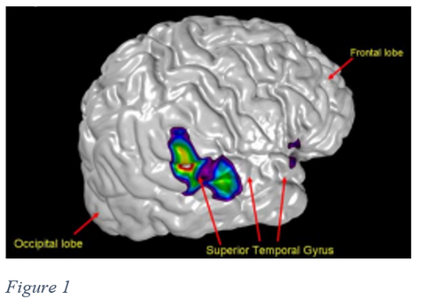 As can be seen in Figure 1 some parts in the brain become active when people perform an auditory imaginary task.