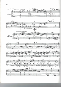 For the intervention two sonata’s from J.F. Nadermann are used: number 5 and number 6. The sonata’s have roughly the same structure and are of the same length. Technically, the two pieces have a lot of similarities: scales, triads and chords. Both pieces are not too difficult, so it is possible to study them in three weeks with a limited amount of time. Each piece consisted of four pages. Technically, the two pieces have also a lot of similarities. The introduction is not too difficult but requires creativity in interpretation and the allegro requires the player to be able to play scales very fast and steady. The pieces can be found below.