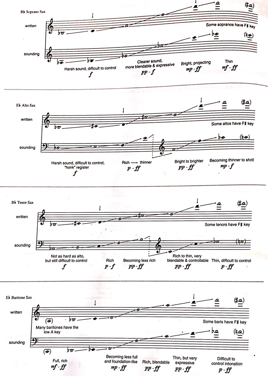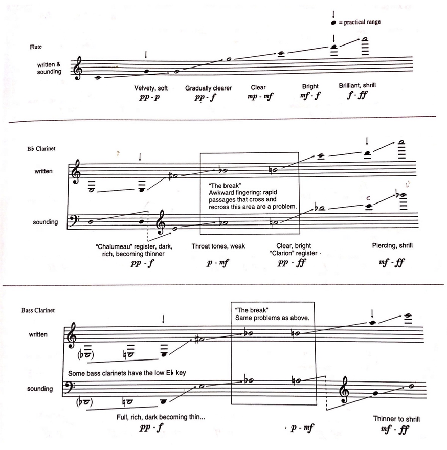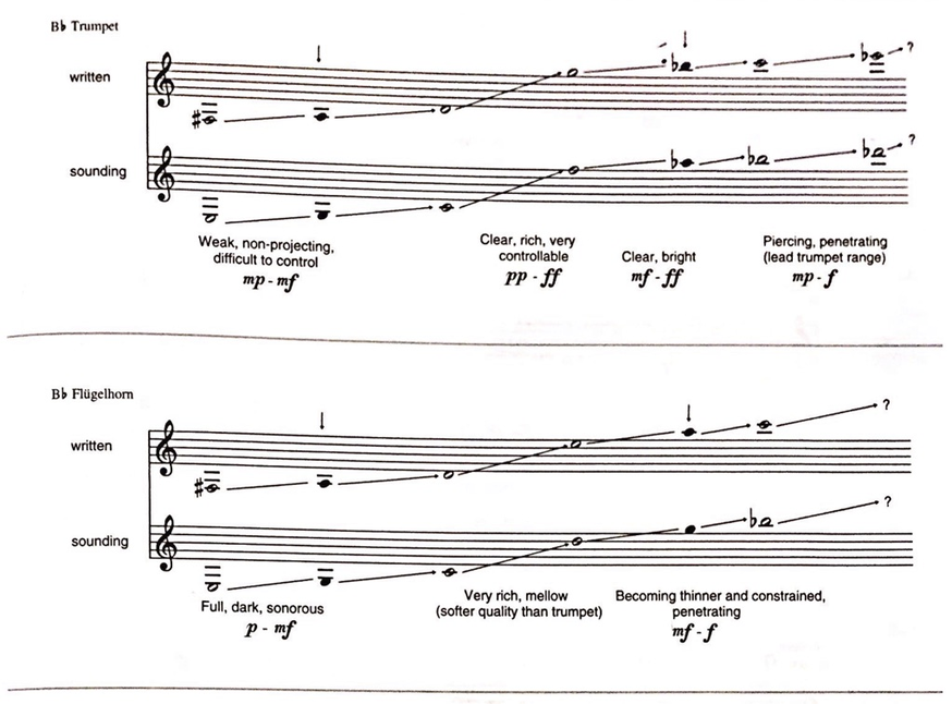 In Figure 4 you will find an overview of the sound characteristics, extracted from the book Modern jazz Voicings for Small and Medium Ensembles by Ted Pease and Ken Pullig. This information is very useful when choosing the instruments for your group.