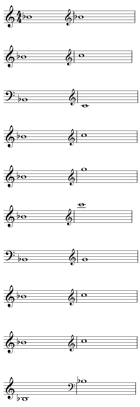 When writing for a horn section it is of course a necessity to have knowledge about the transpositions of every instrument. In Figure 2 you will find the transposition of all the 10 instruments I will use in my research.
