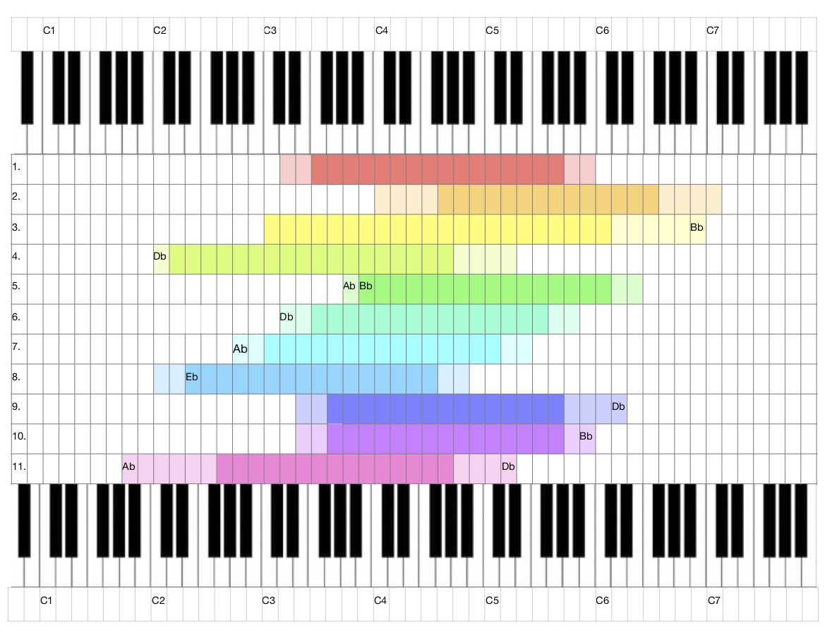 The following list I adopted from the book Modern jazz Voicings for Small and Medium Ensembles by Ted Pease and Ken Pullig. I reduced the vocal parts, which were targeting all vocal ranges, to the one of my own.