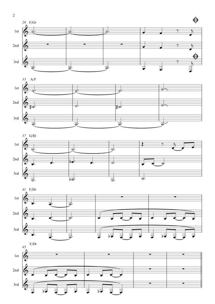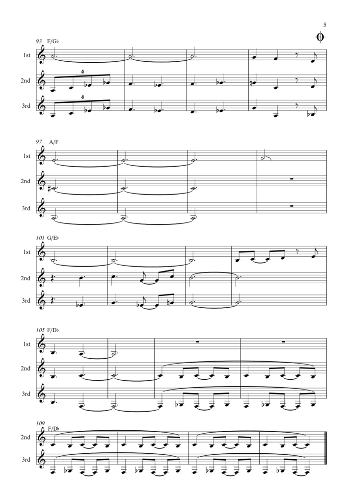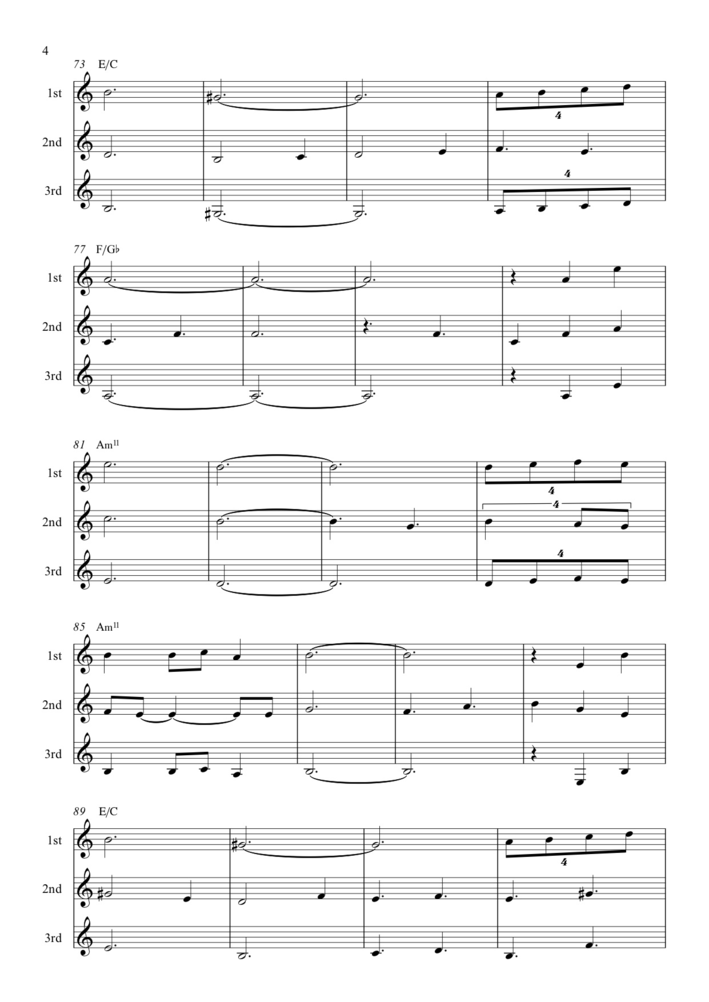 The main arranging techniques I used for this arrangement are lead vs. backings and polyphony. I used different types of voicings, some are consciously picked, and some are more random because of polyphony.