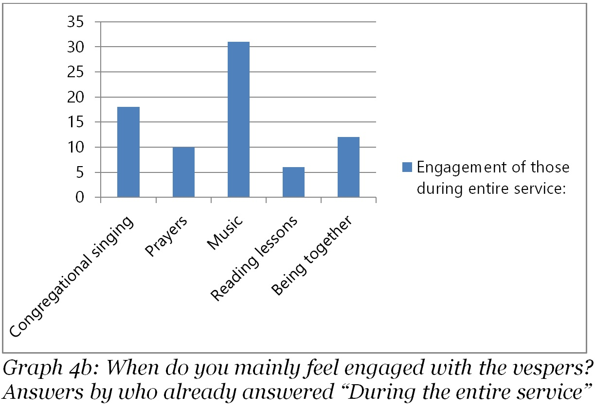 Graph 4b: When do you mainly feel engaged with the vespers? (Answers by those who already answered “during the entire service”, but also marked specific parts of the vespers.)