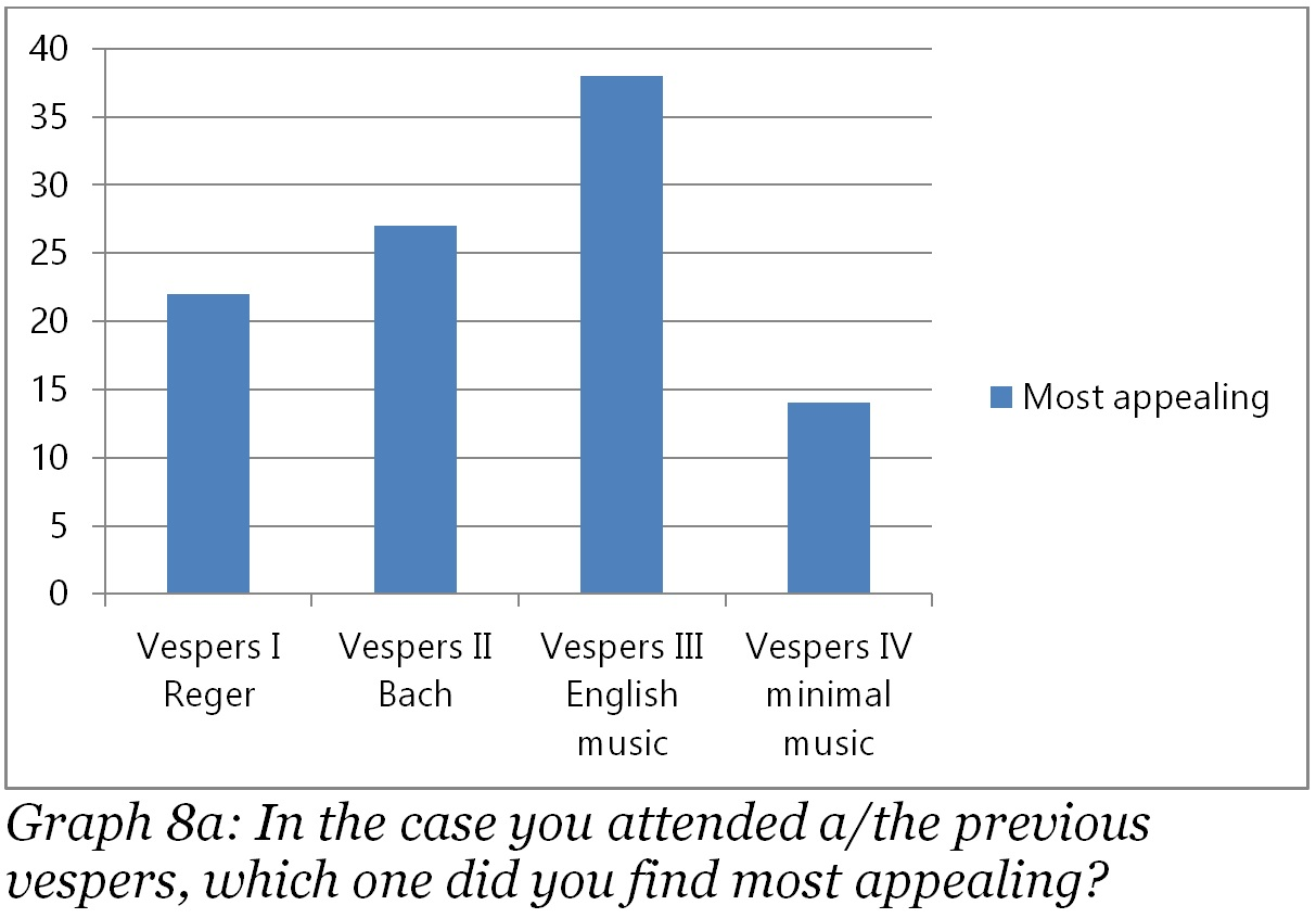 Graph 8a: In the case you attended a/the previous vespers, which one did you find most appealing? (Overall preferences)