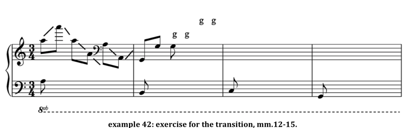 Musicians who could very well play, improvise and compose wrote down the majority of repertoire, which we encounter as Western classical musicians. In conservatories and music schools often an attitude towards classical music is developed from a narrower point of view: learning and performing a score. There are extra classes in solfeggio, harmony, improvisation, analysis and counterpoint. However, the reality is that, for most students these subjects are not connected to their practice as instrumentalists. As a pianist, I don’t use all the resources I have as a theorist, and there seems to be a separation between these two practices. Might there be a different way to start practicing a classical work? For the purposes of my research I have chosen one piece as a case study: the first movement of Beethoven's piano sonata n. 31 (op. 110, in A flat major). First I analysed the movement and then I looked at what I can do with the data generated from the analysis. I developed some exercises in order to prepare one for studying the actual work. These exercises could bring theoretical knowledge and improvisation skills into the instrumental lessons and give the player a deeper insight into Beethoven’s harmonic language and use of formal structures. Further research is necessary in order to work out these exercises for more repertoire of all levels, styles and even instruments. It is my intention with this research and future work to bring music theory and activities in the practice rooms of musicians closer together.