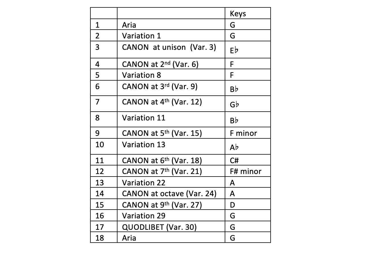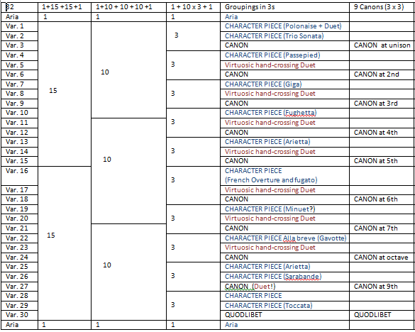 Figure 4. The structure of the shortened Goldberg Variations retaining the Arias, canons and Quodlibet.