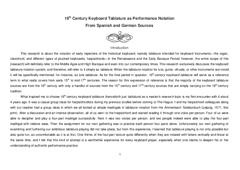 As a harpsichordist and HIP performer, I was so fascinated with 16th-century keyboard tablature notation on my first encounter some years ago. Since then, I have been inspired to explore playing from original notation as part of my HIP training. This research is a big part of this artistic endeavor, addressing 16th-century keyboard tablature notation from Spanish and German sources and finding answers for what it is, why it was invented, why it is not in practice today, and how one may bring it back to practice. At the beginning stages of this exploration, I noticed that keyboard tablature was not really in practice as performance notation in the current HIP dialogue. I wanted to investigate why and, through this thesis, present it as a relevant, stimulating topic. This research presents historical and theoretical analysis of this notation and the results of an extensive systematic experiment-survey I devised and conducted with 32 non-musicians and musicians of all levels. Personally, the contents of this thesis have greatly deepened my understanding of historical performance of keyboard music in the 16th century and enriched my experience as an Early Music performer.