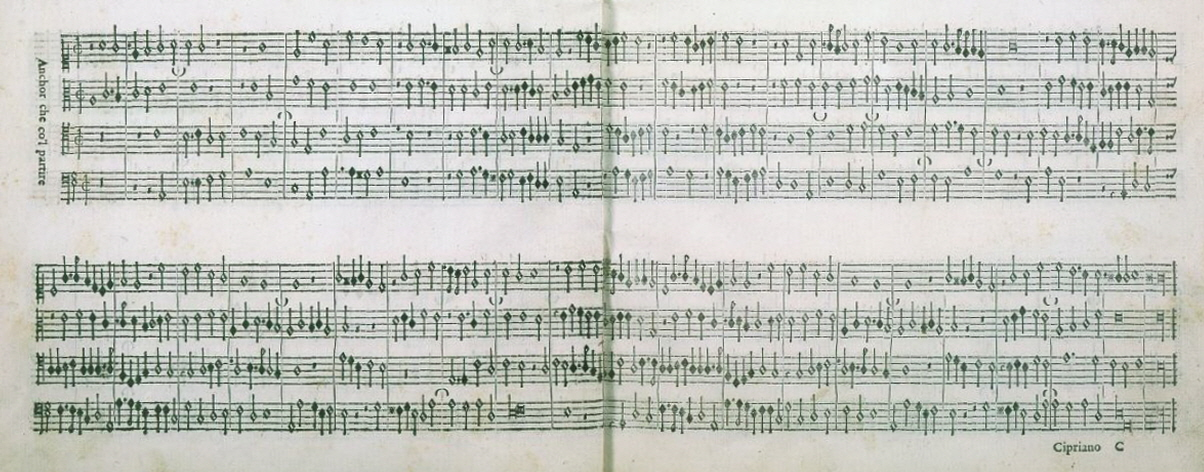 Anchor che col’ partire from Tutti i madrigali di Cipriano di Rore a quattro voci spartiti et accomodati per sonar d’ogni sorte d’istromento perfetto (Venice,1577)