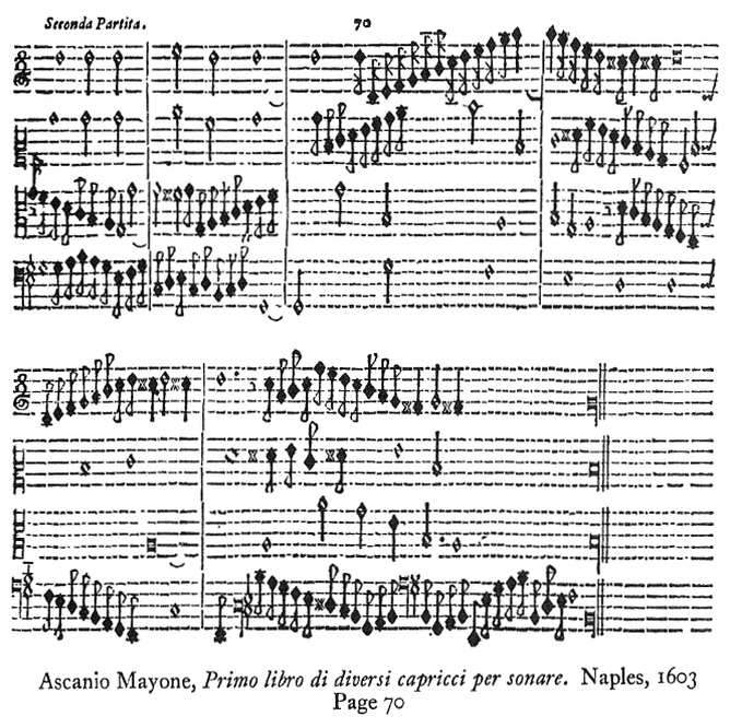 Tablature is not only a method of preserving composition but also a source of information for performance practice. As discussed in Chapter 4, it is a relatively easy and logical notation compared to what preceded it (improvisation or part-reading) or concurrently existed as an alternative (keyboard score or partitura, especially with a lack of alignment as in the following piece):