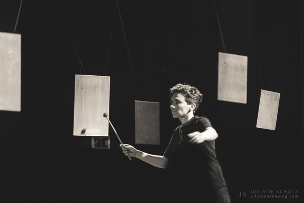 When I think about Nine Bells (1978) I think about paths, trajectories, lines. It's not so much about arriving at the bell and hitting it at the right time, (an activity also known as percussion logistics), so much as it is about the traveling between. Literally the steps taken. Walking is famously one of the most difficult things to do on stage. It's also one of the main things I've found myself doing throughout this research project. Somehow opening up my practice of percussion to "the stage" continually led me to the surprisingly complex task of walking. I struggle with it every single time. Walking is both something I have literally done, and it has also occasionally been something of a symbolic gesture, like that of walking away from my instrument (as was the case in No Say No Way (Sarhan, 2015) and in What Noises Remain (Swendsen/Torrence, 2016)). In Australian Aboriginal culture there is a tradition where a person takes a break from regular work to take a short journey walking in the Australian bush. This is known as going walkabout. This project has at times felt like I've gone walkabout, taking a break from my regular work, to try to live in a wild country that manages to be both foreign and native to me at once.