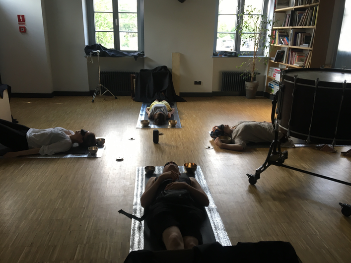There is a section where I lay boards across the hips of the participants and a Chinese cymbal rests on their sternum. I found out quickly that not all bodies can have a cymbal on their chest, and indeed not all bodies have hips that easily balance a board. It wasn’t that we hadn't considered this fact, but it was another thing to be in a situation with new body after new body and quickly having to improvise the best possible way to provide this experience of having a instrument resonating through their bones, while still fitting the individuality of each body.