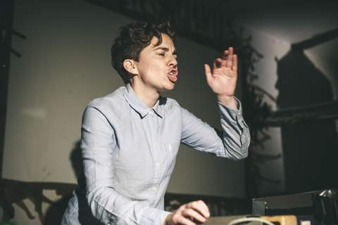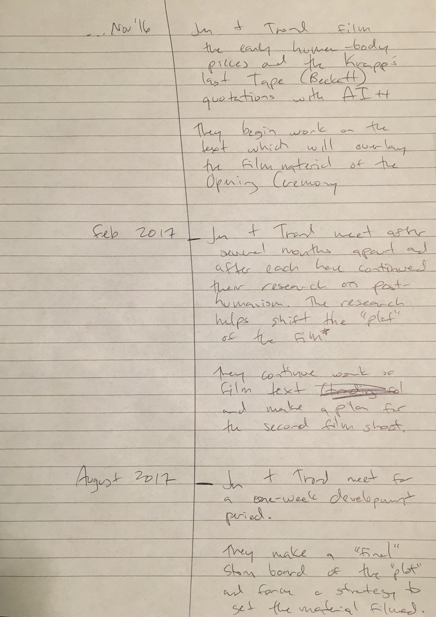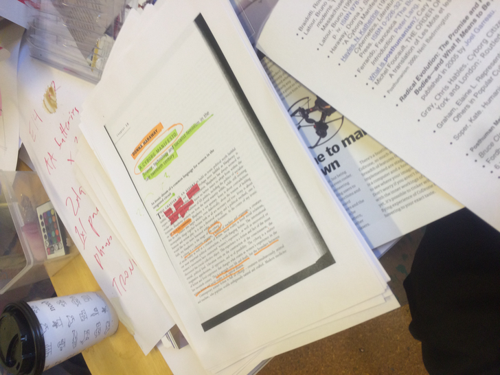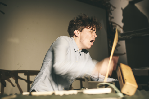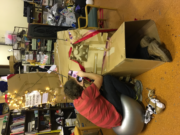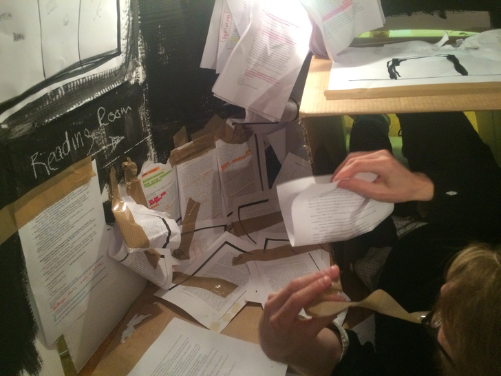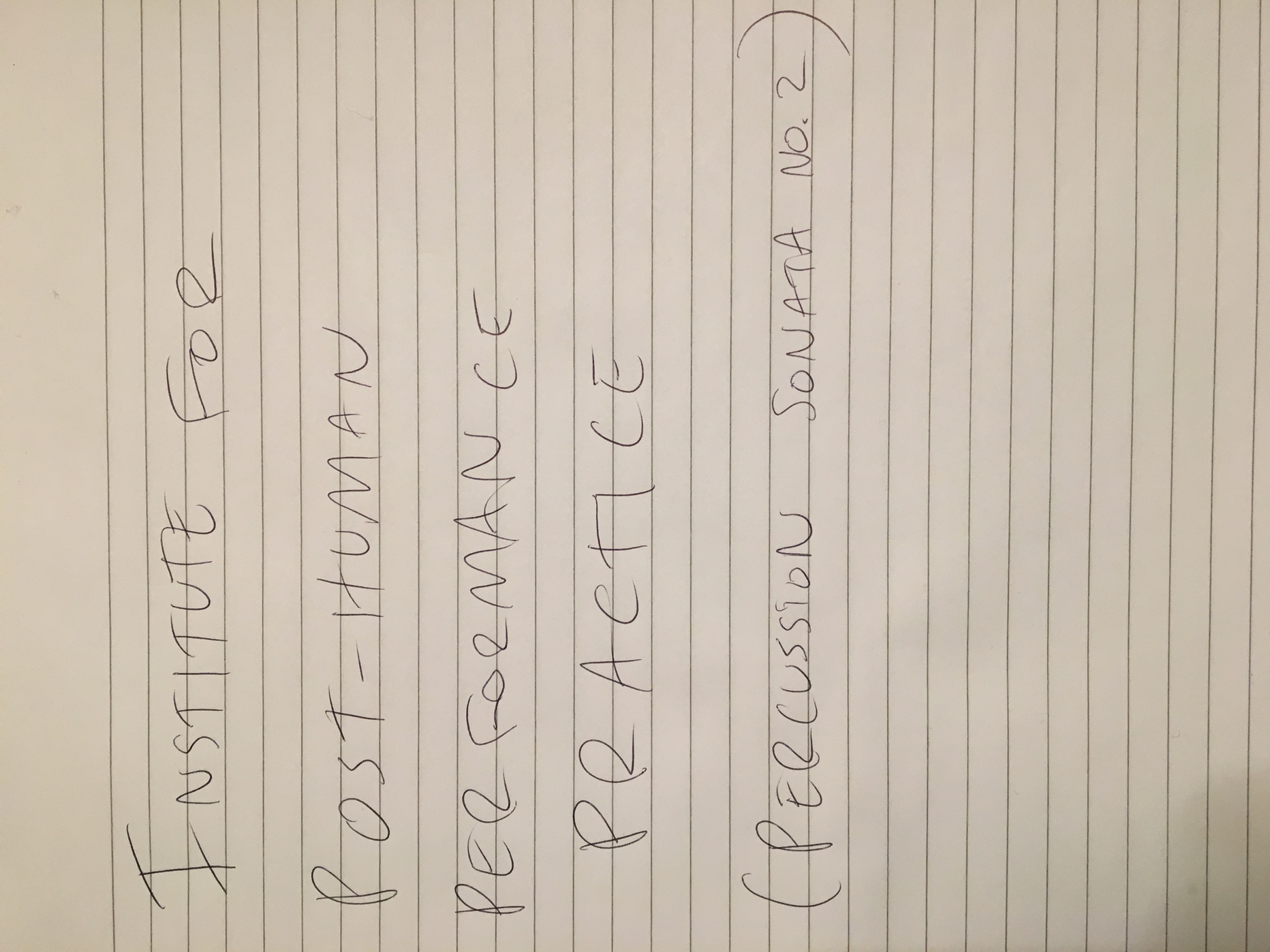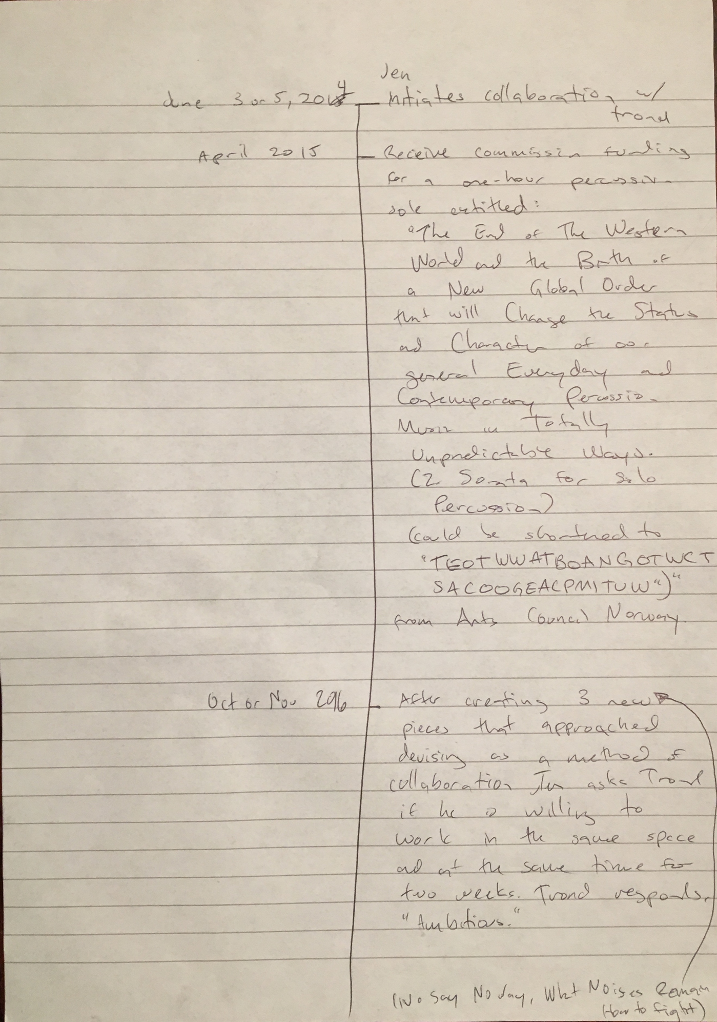 What does the musician become when sound and instrumental thinking are no longer privileged as the foundation of a musician's practice? In what ways does an emphasis on the musician's body cause music to approach art forms such as theatre and performance? After a generation of pioneering work from Mauricio Kagel, Dieter Schnebel, John Cage and many others, where is the theatrical and the performative in music today? How do its recent developments shape, alter, constitute a musician's artistic practice? Through her research, Jennifer Torrence argues that this type of music demands the musician assume a different understanding and relation to their instrument and therefore a different relation to their body. This relation calls for new ways of making and doing (new artistic practices) that foreground the body as a fundamental performance material. Through an emphasis on the body, the musician emerges as a performer. This exposition is a reflection on the research project Percussion Theatre: a body in between. This project is comprised of a collection of new evening-length works that approach the theatrical and performative in contemporary music performance. These works are created with and by composers Wojtek Blecharz, Carolyn Chen, Neo Hülcker, Johan Jutterström, Trond Reinholdtsen, François Sarhan, and Peter Swendsen. The exposition contains reflections on recent developments in contemporary music that mark a mutation of the executing musician into a co-creating performer, as well as images, artefacts, videos, and texts that unfold the process of creating and performing the work that constitutes this project. The ambition of this exposition is that through the exposure of a personal artistic practice an image of a larger field may come into focus.